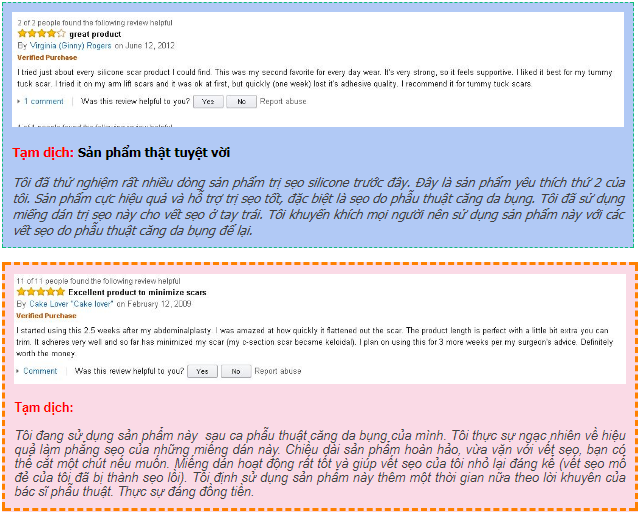 Mình phải sinh mổ khi sinh còn trai đầu lòng do thai ngược, vết mổ không dài nhưng đậm màu và lồi lên trên như cục thịt thừa ấy. Mình tính đến trung tâm thẩm mỹ nhưng do không có thời gian cộng thêm chi phí cao nên chần chừ hoài đến khi vết sẹo được 1 năm. Lúc này, có nhiều thời gian hơn, mình mới tìm cách đánh tan vết sẹo lồi xấu xí ấy. Nghe con bạn giới thiệu dùng tấm dán làm mờ sẹo Scar Heal FX của Mỹ. Mình dùng thấy hiệu quả, sau một thời gian kiên trì sử dụng, vết sẹo lồi đã xẹp xuống đáng kể và màu cũng nhạt dần gần đều với màu da tự nhiên. Hy vọng chỉ sau 1 thời gian nữa vết sẹo mổ sẽ biến mất.