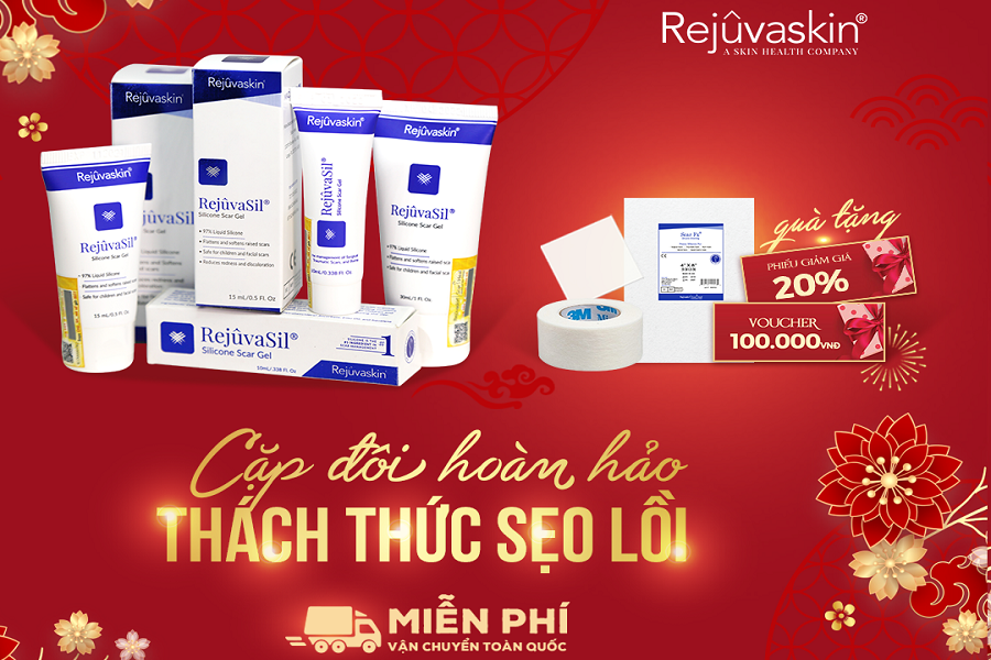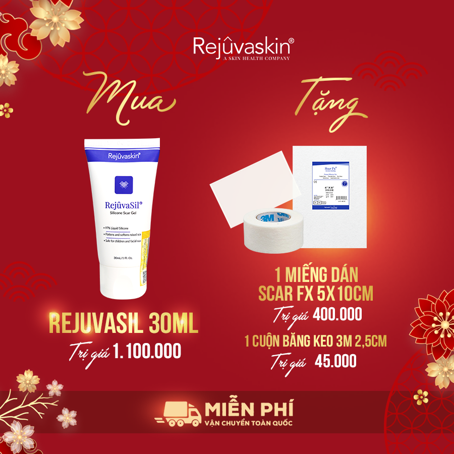 Mua gel Rejuvasil 30ml =>Tặng ngay 1 miếng dán Scar FX 5x10 cm trị giá 400.000 vnđ + 1 cuộn băng keo y tế trị giá 45.000 vnđ.