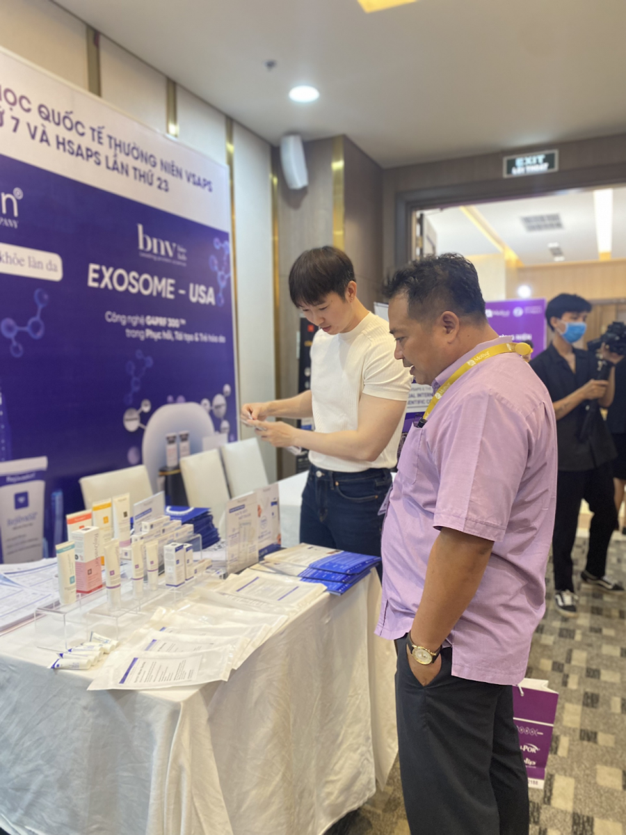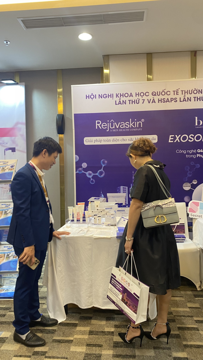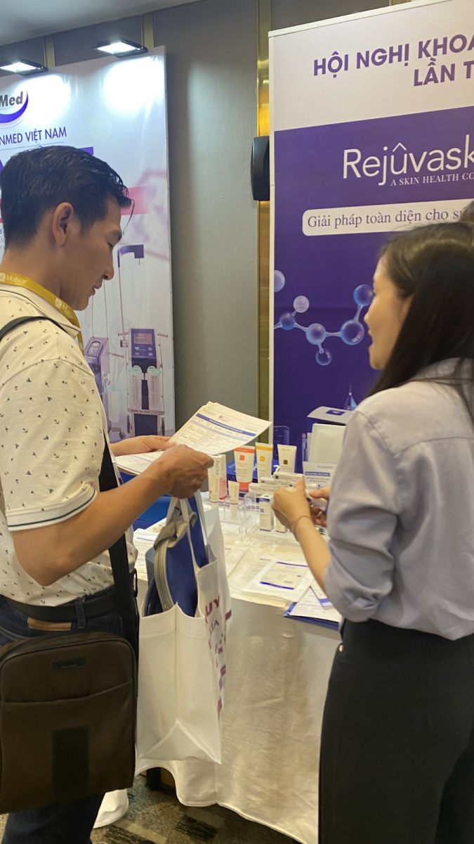 Ngoài ra, gian hàng trưng bày của Rejuvaskin Việt Nam trong hội nghị cũng thu hút sự quan tâm chú ý của rất nhiều quan khách tham gia. Tại gian hàng của Rejuvaskin Việt Nam, rất nhiều bác sĩ, chuyên gia đã bày tỏ sự quan tâm đặc biệt tới các sản phẩm xóa mờ sẹo như kem xóa mờ thâm, sẹo rỗ, lõm Scar Esthetique, gel xóa sẹo lồi, phì đại RejuvaSil, miếng dán silicone sheeting Scar FX và các sản phẩm chăm sóc da như kem chống nắng vật lý Mineral Facial, sữa rửa mặt Anti-Pollution, kem dưỡng ẩm và phục hồi Skin Recovery, kem phòng và ngừa rạn da Stretch Mark, bộ Retinoid ngừa lão hóa.