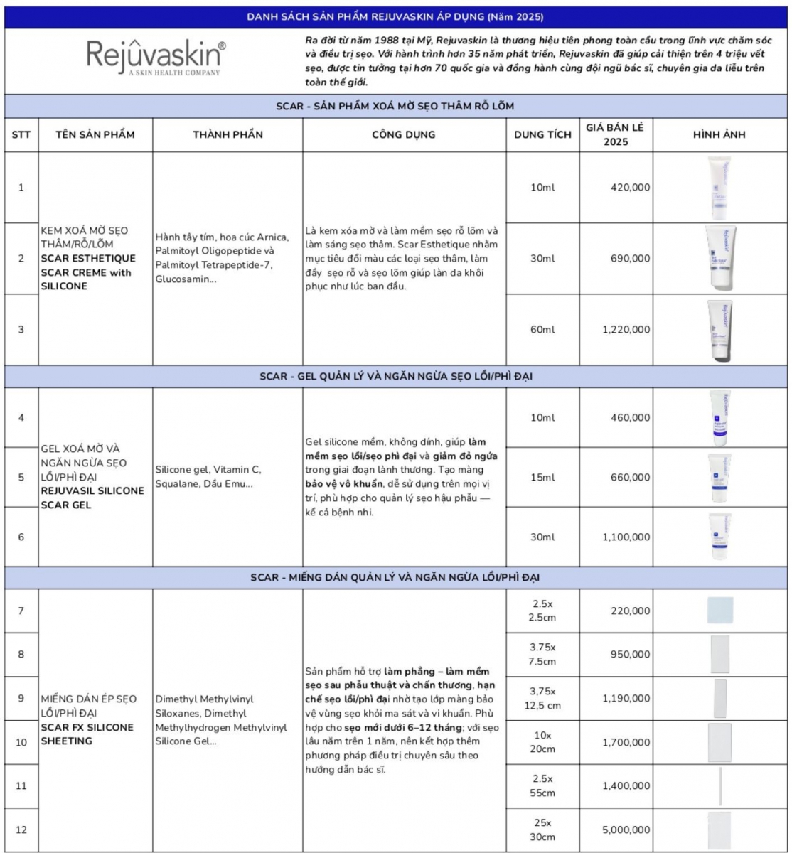 | Kem trị sẹo lồi/phì đại Rejuvasil Silicone Gel | 15ml | 650.000đ | 660.000đ |